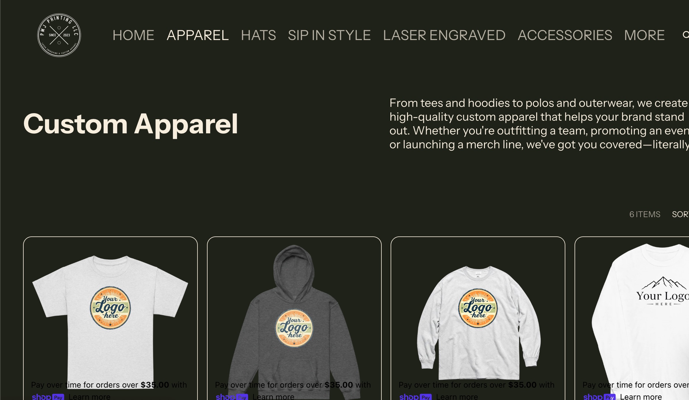 - Apparel page → dark background
