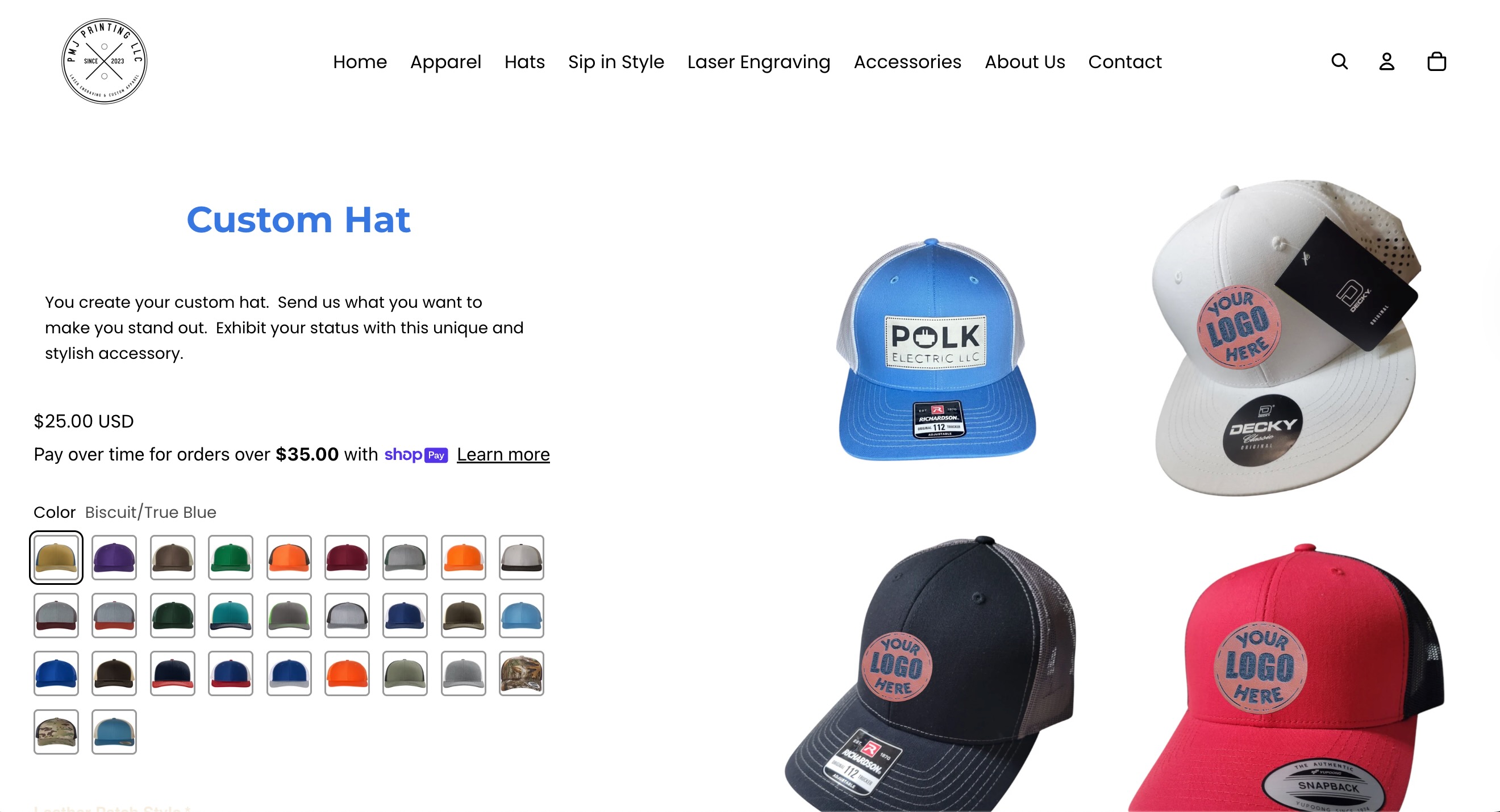 - Hats page → light background
