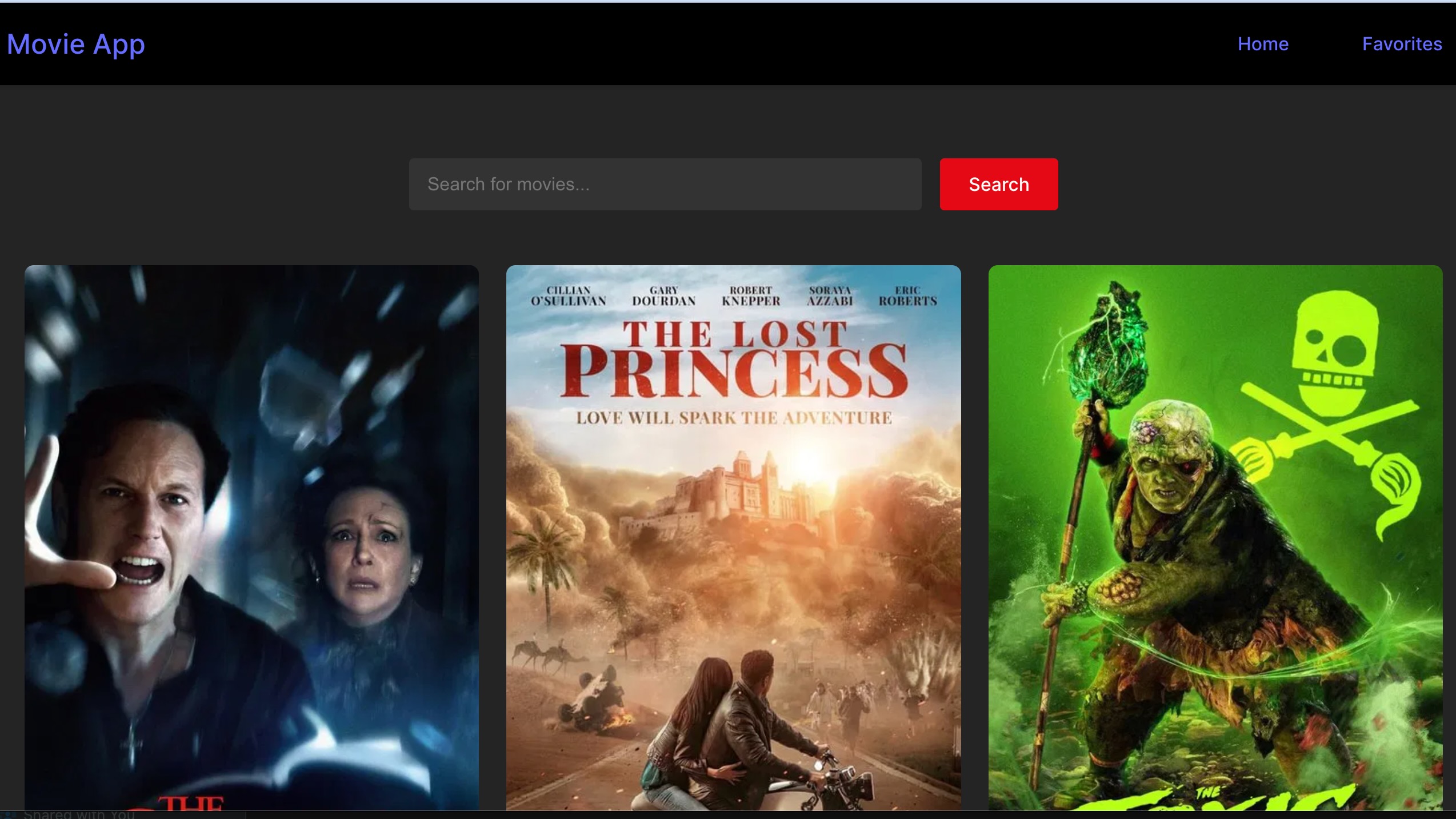 A React-based web application that lets users search and discover movies. Features include movie search functionality, popular movies display, and a favorites system. Built with modern React practices, the app demonstrates clean code organization, API integration, and responsive design principles.